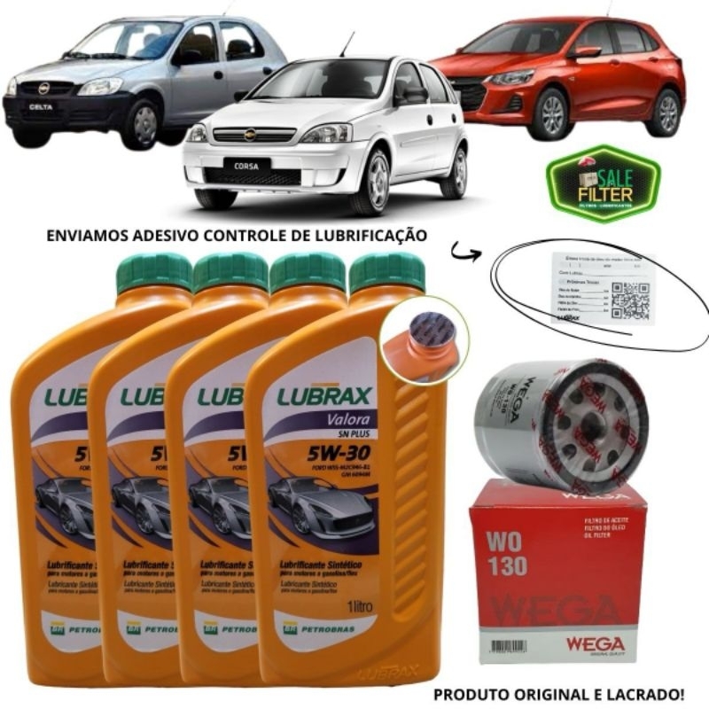 KIT TROCA DE ÓLEO 4L 5W30 E FILTRO WO130 ONIX CORSA CELTA LUBRIFICANTE SINTÉTICO 5W-30 LUBRAX FILTRO WO130 WEGA