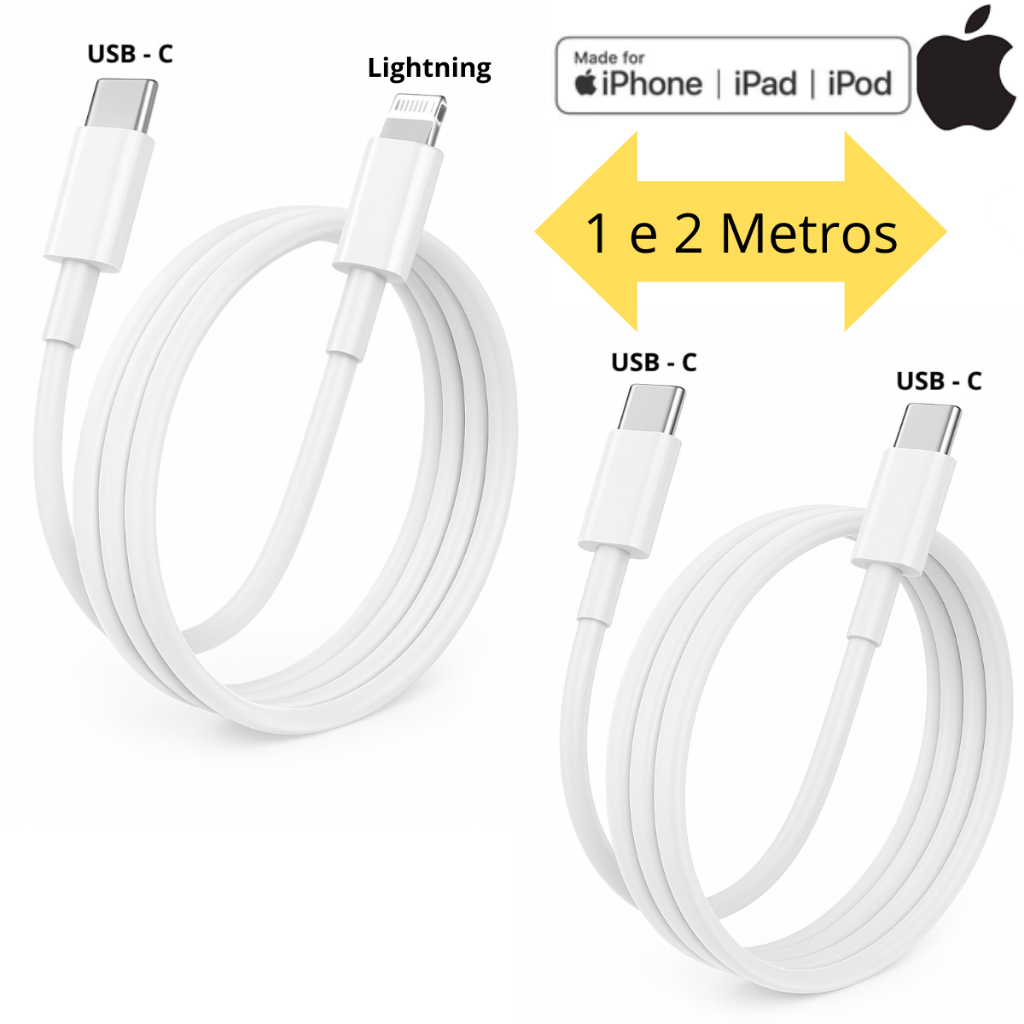 Cabo Carregador Tipo C Turbo Para iPhone 11 14 Pro Max Cabo Lightning CABO PARA IOS 1M OU 2M Cabo iPhone 2 metros