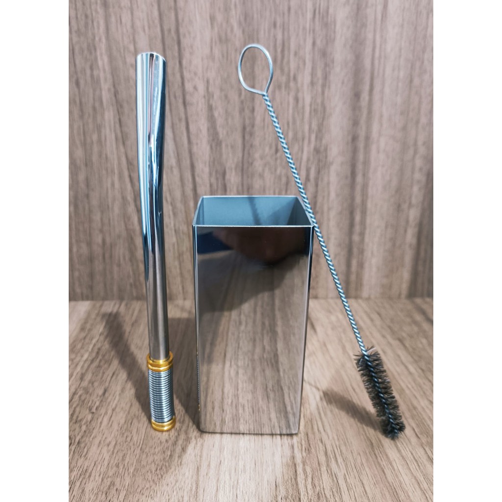 Kit Tereré: Copo Cuia Quadrado INOX polido 250ml + Bomba V6 Slim Premium e Escovinha de Limpeza