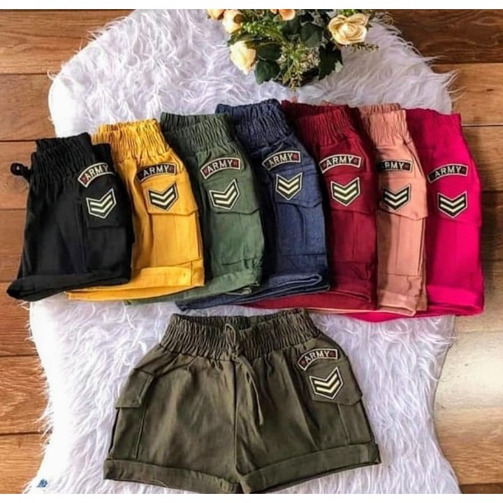 Short Feminino Bomber Jogger Mini Shorts Cargo Army Bengaline Exército Militar Bolso Moda Blogueira