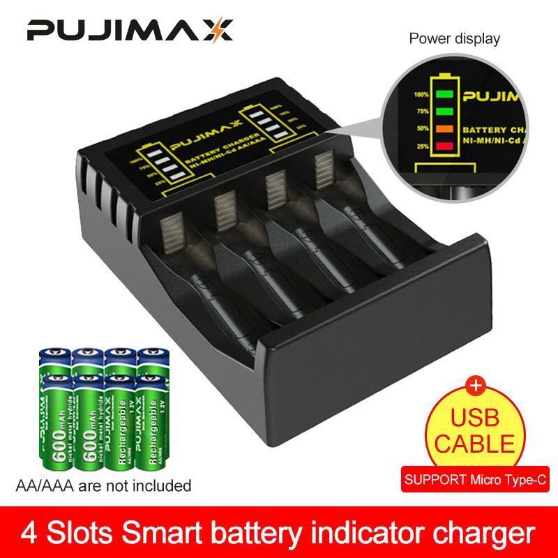 Carregador de Pilhas USB Digital carregamento rápido AA/AAA