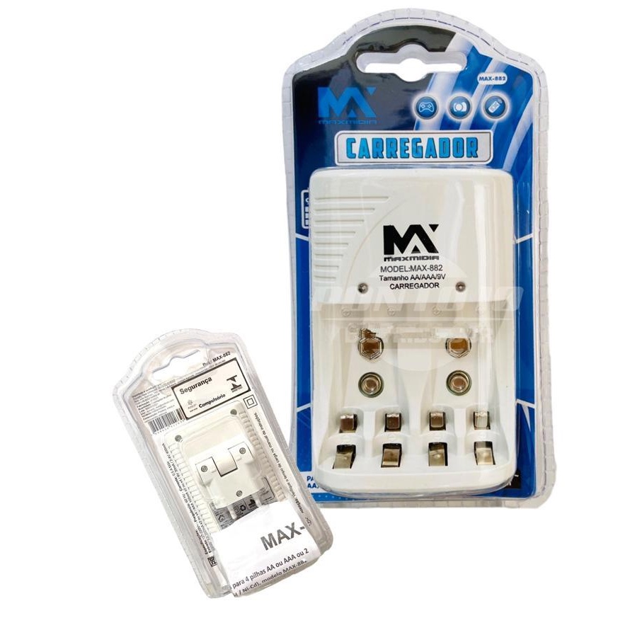 Carregador de Pilhas para AA/AAA/9V:MAX-882-MAXMIDIA