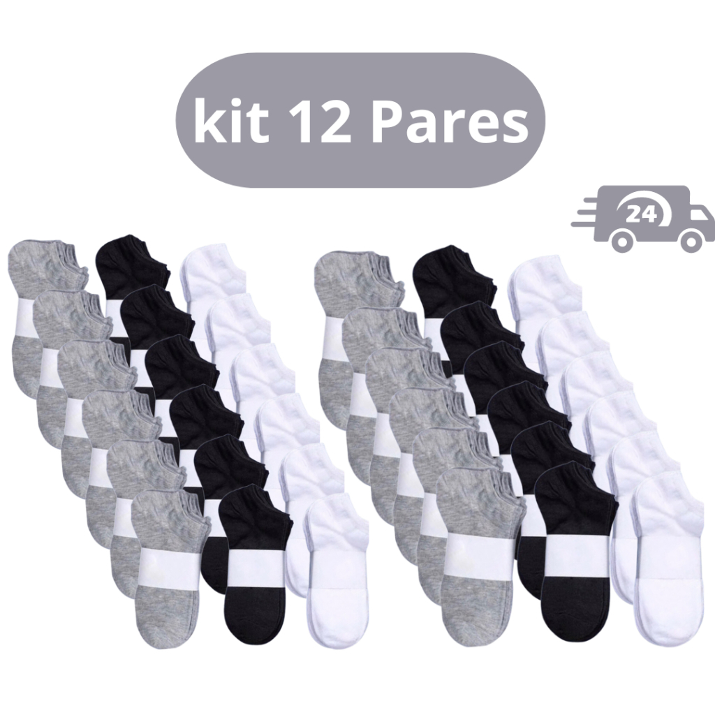 Kit 12/6 Pares Meias Unissex Cano Curto Soquetes Sapatilha