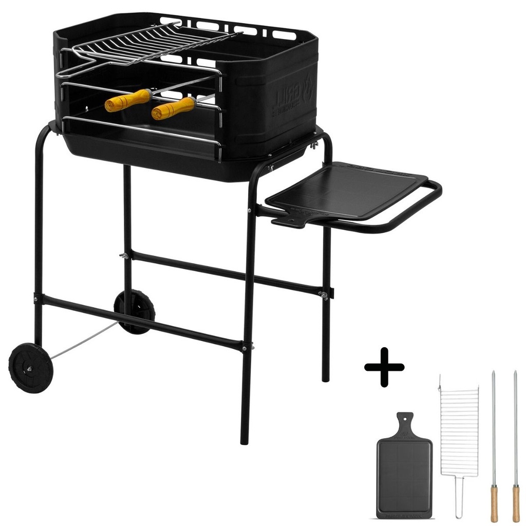 Churrasqueira Móvel Desmontável Portátil Com Grelha + 2 Espetos Preta Aço Espetinho Praia Reforçada Pratica Leve Resistente Reforcada Carvão Para Assar Churrasco Modelo Original Barato Oferta Promoção Frete Envio Rápido Com Nota Fiscal Garantia Pro Tork