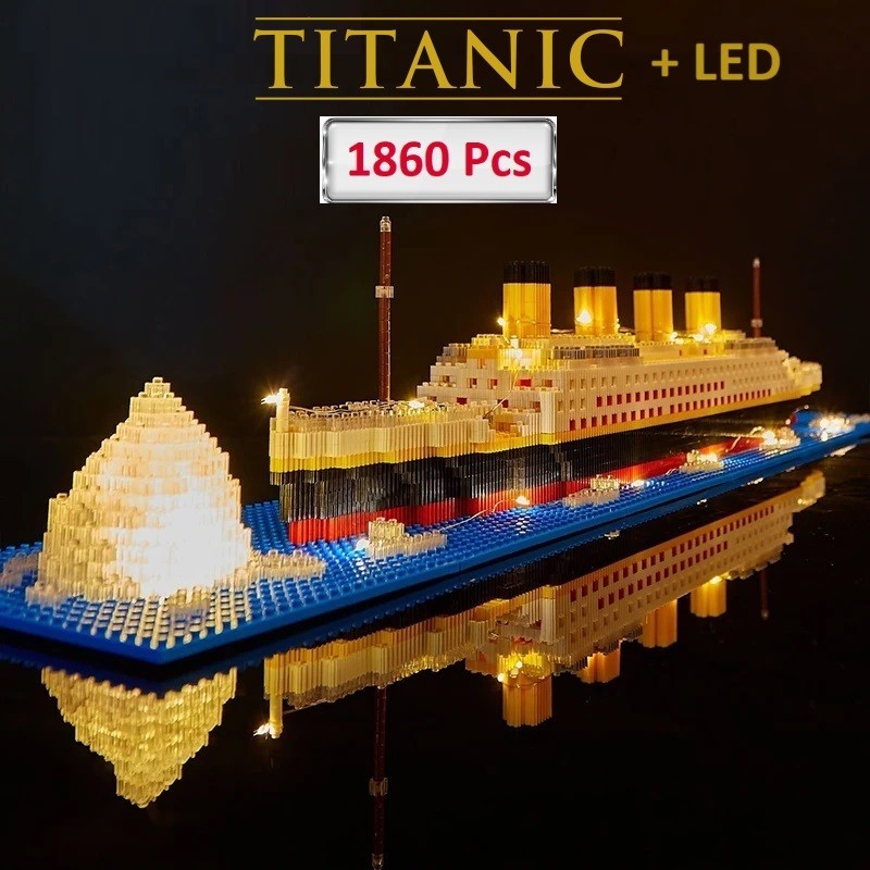 Blocos de Montar Navio Titanic 1860 Peças Com LED Sem Caixa