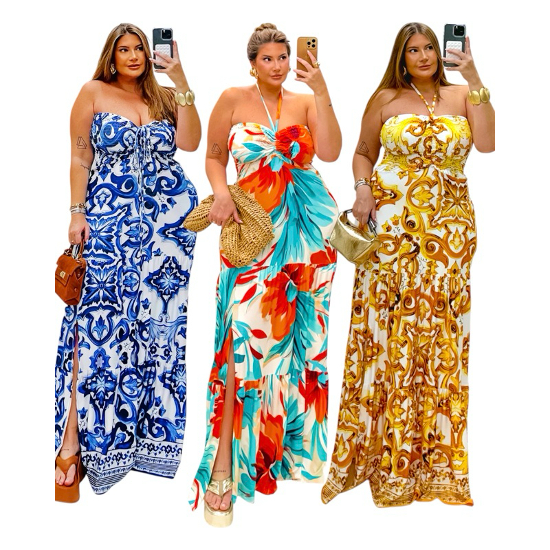 VESTIDO LONGO PLUS SIZE COM FENDA NA LATERAL/VESTE DO 48 AO 54