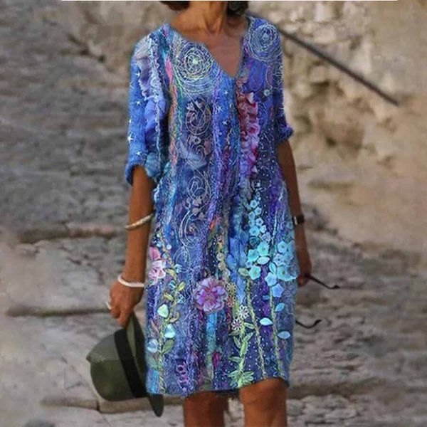 Vestido Manga Longa Casual Primavera Verão Largo Estampado Saia De Linho De Algodão Feminina De Média