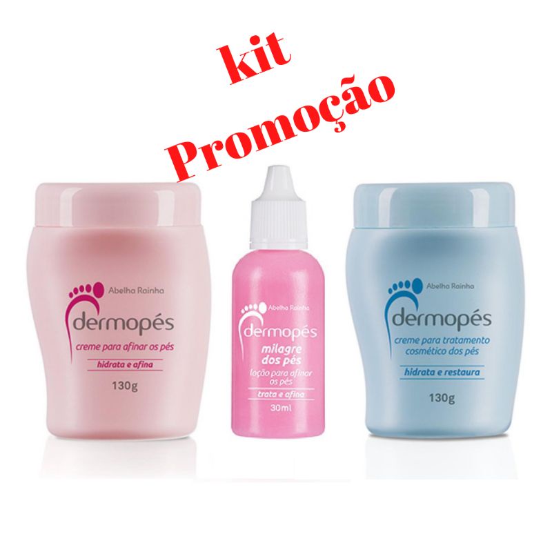 Kit Promoção 3 Dermopés Abelha Rainha - Cremes p/ os pés Hidrata e Afina + Hidrata e Restaura 130g + Milagre dos pés loção para afinar os pés 30mll