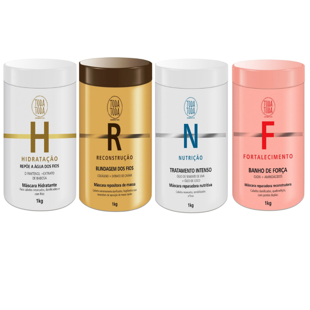 KITS 4 MÁSCARA TODATODA 1KG CRONOGRAMA CAPILAR FORÇA+HIDRATAÇÃO +RECONSTRUÇÃO+NUTRIÇÃO