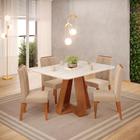 Conjunto Sala de Jantar 4 Cadeiras Tampo Sem Vidro DJ Móveis Kiara Freijó Quartzo Yasmin Linho Neve