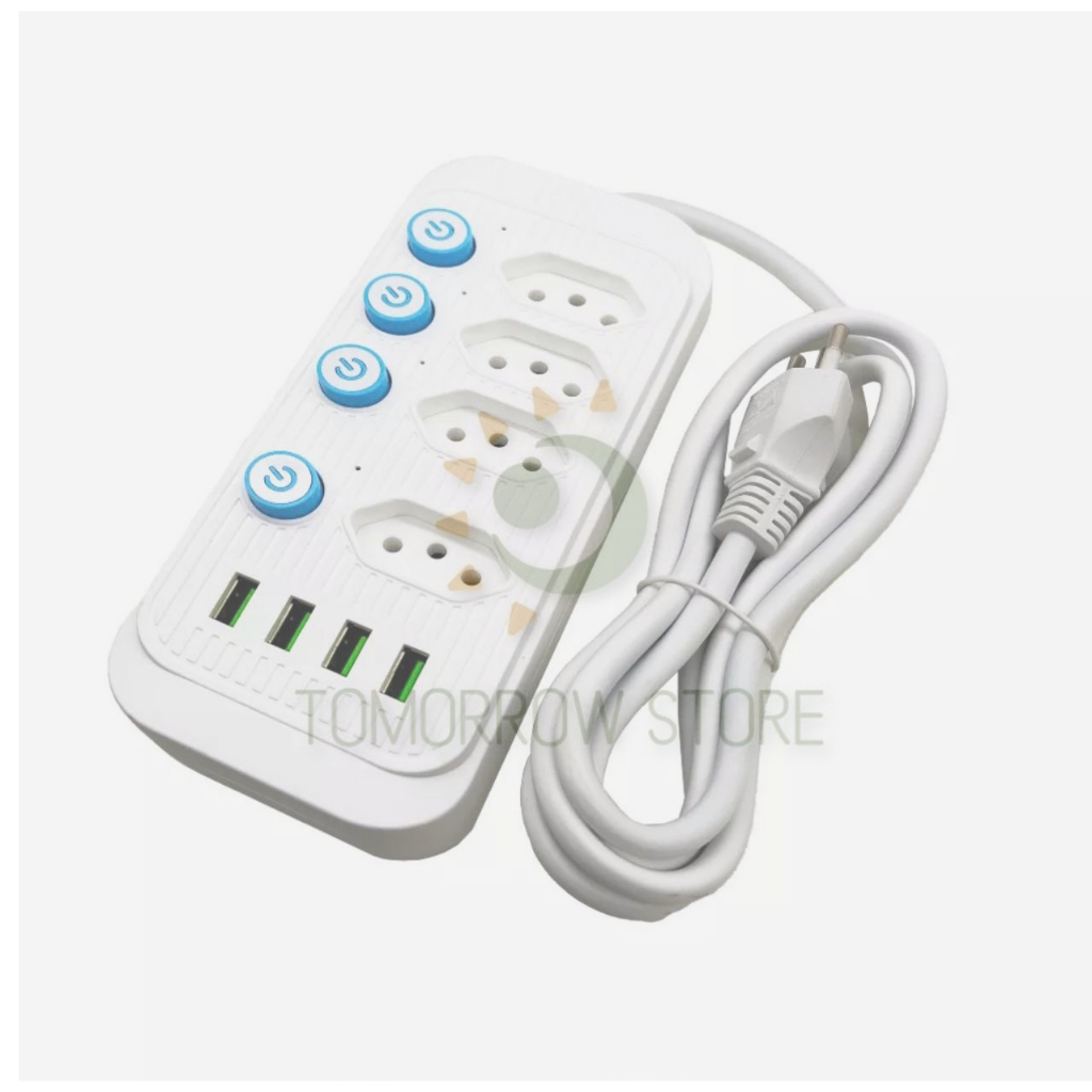 Filtro de Linha Régua com 3/4 Tomadas e 4 USB Extensão Elétrica C/ Cabo de 2 Metros 4 Interruptores Bivolt