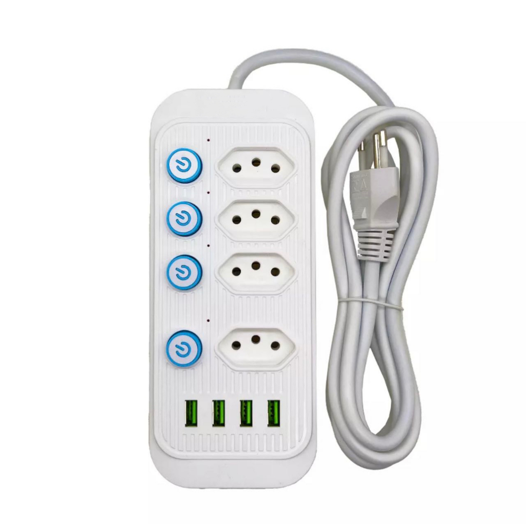 Filtro de Linha Régua com 3/4 Tomadas e 4 USB Extensão Elétrica C/ Cabo de 2 Metros 4 Interruptores Bivolt 110/220