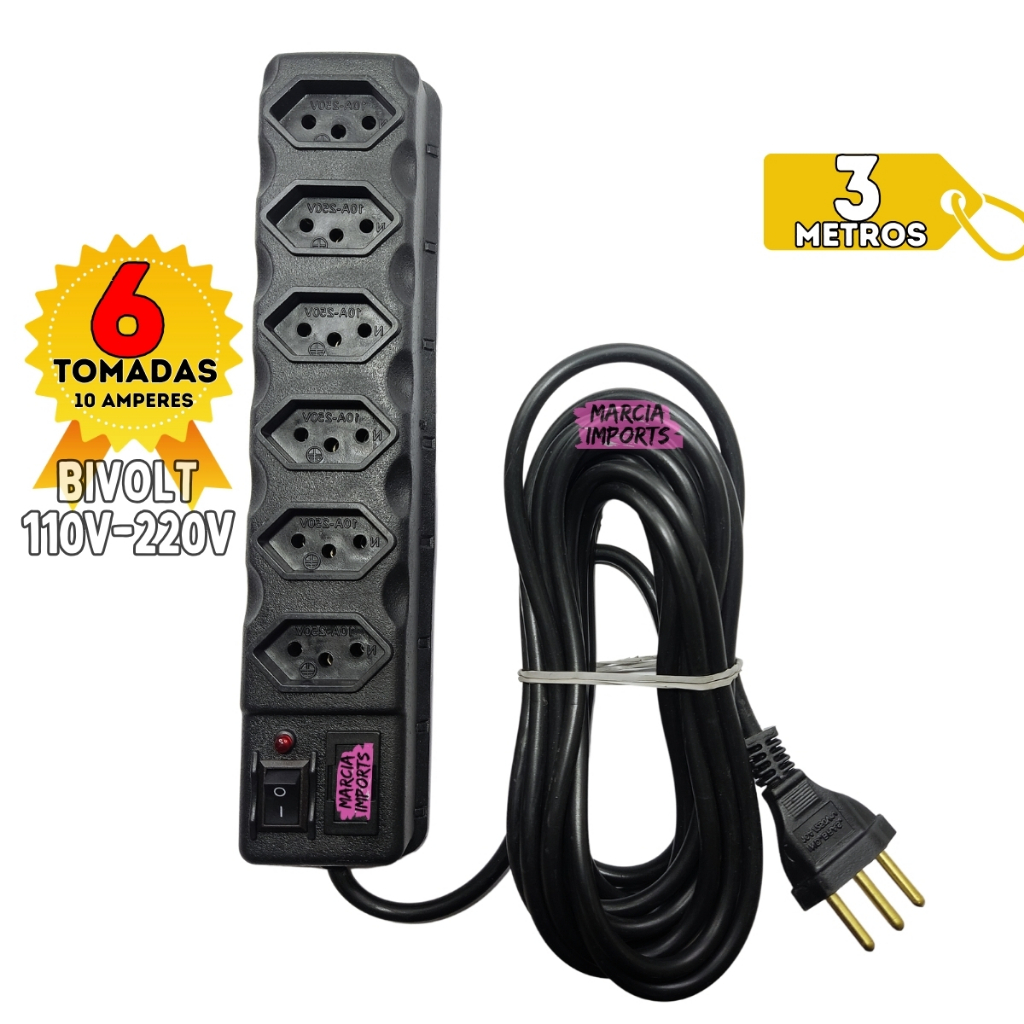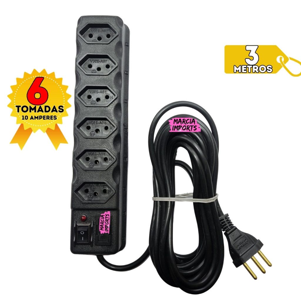 Regua Eletrica de 6,5,4 e 3 tomadas com 3 metros de cabo Filtro De Linha Bivolt com Fusivel Tripolar