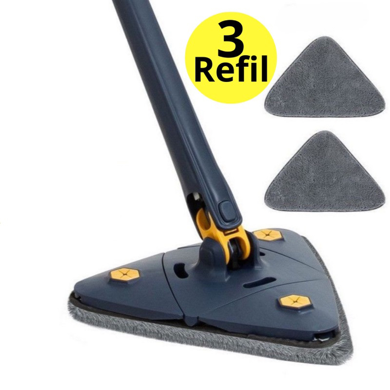 Esfregão Triangulo Mop De Limpeza Ajustável Giratória 360° Limpeza 1 Esfregão+KIT 2 REFIL