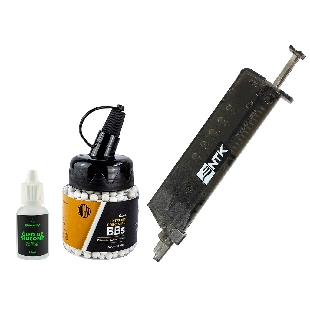 BBs Airsoft 0.20g 6mm 1000un Mamadeira Rossi + Carregador Speed Loader + Silicone
