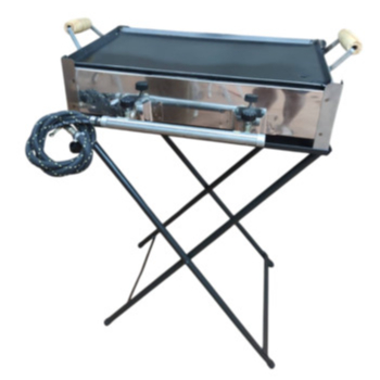 Fogão Industrial Inox Fogareiro de Mesa 2 Bocas A Gás Portátil Caminhoneiro Camping Com Chapa Bife