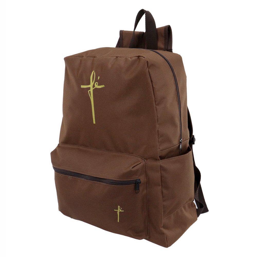Mochila Feminina e Masculina De Costas Fé, Com Bolso Externo De Ziper, Confortável e Versátil