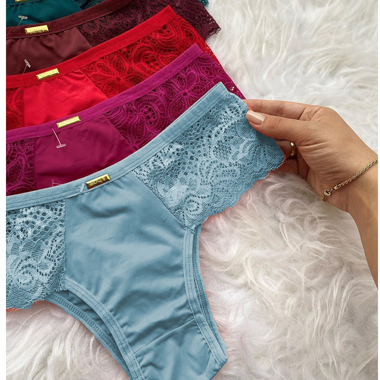 kit 5 Calcinhas Renda Lateral Conforto Dia a Dia Tangão Feminina Lingerie Revenda Atacado
