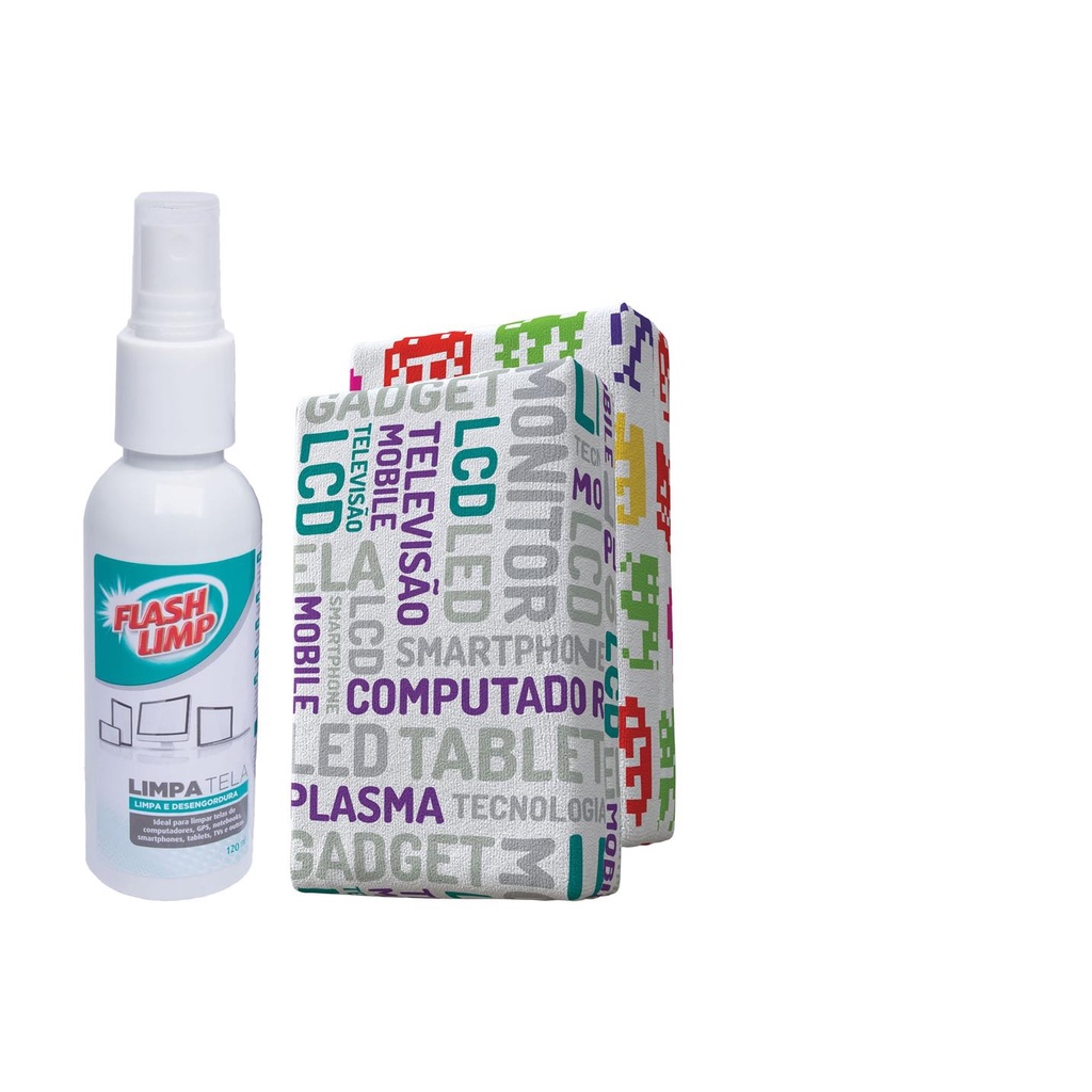 Limpa Telas Notebook Celular Monitor TV Kit Com 2 Esponjas e 1 Limpa Telas 120ML Flash Limp