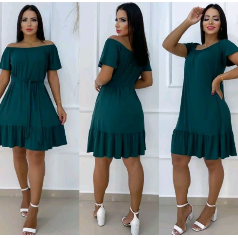 Vestido Curto Feminino Duna Pipoca Manga Curta Babado Vestidos Midi Festa Pipoquinha Ombro a Ombro Moda Evangélica Ciganinha Elástico Na Cintura