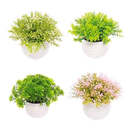 Kit 4 Vasos Vasinhos Plantas Flores Artificial Decoração - Cgm Store