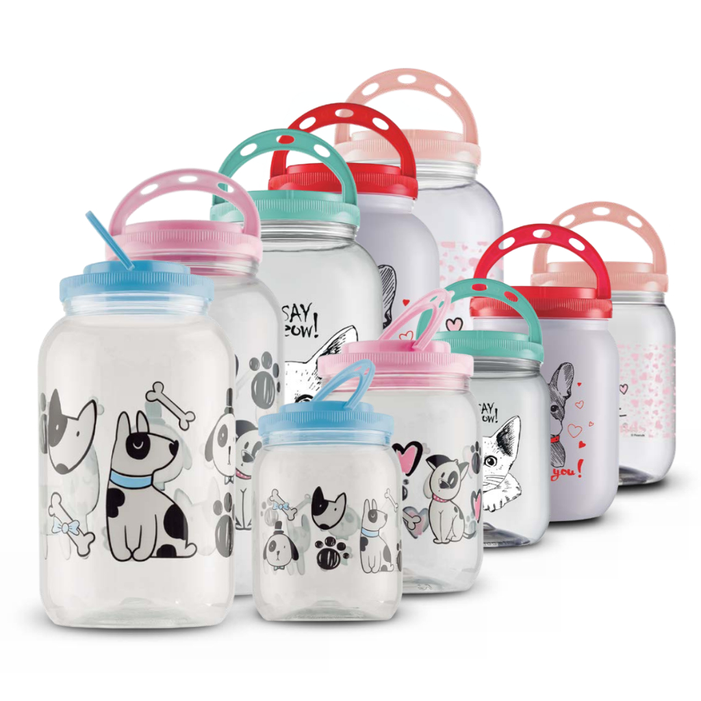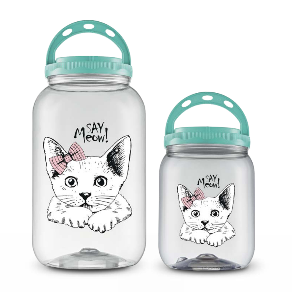 Kit 2 Potes Ração 3,6L Petisco 1,7L Gato Baby Cat Armazenador Porta Guarda Ração Petisco Com Alça Gato Cachorro Contêiner Dispenser Pet Com Tampa Portátil