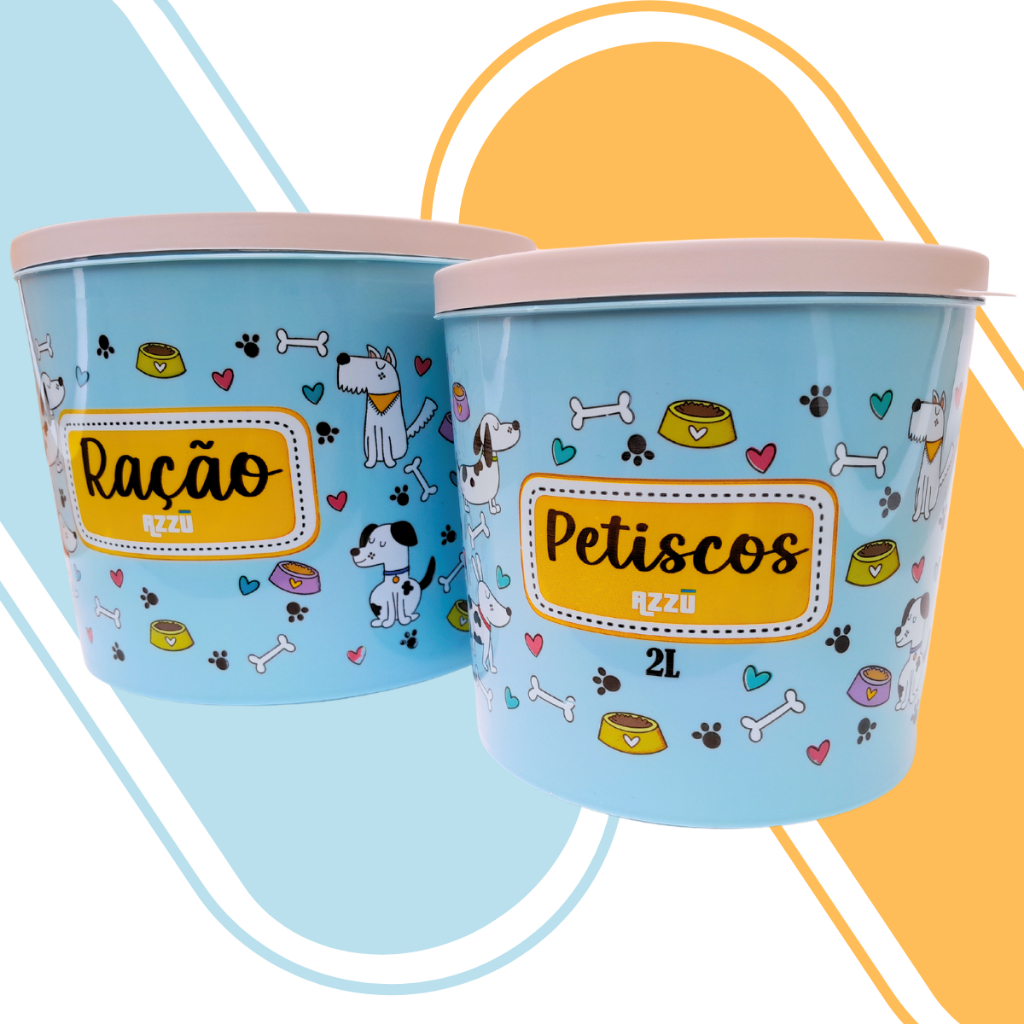 Kit 2 Potes Porta Ração e Petisco Armazena e Conserva a Ração do seu Pet 2L e 5L Nas Cores Rosa e Azul Para Macho e Fêmea