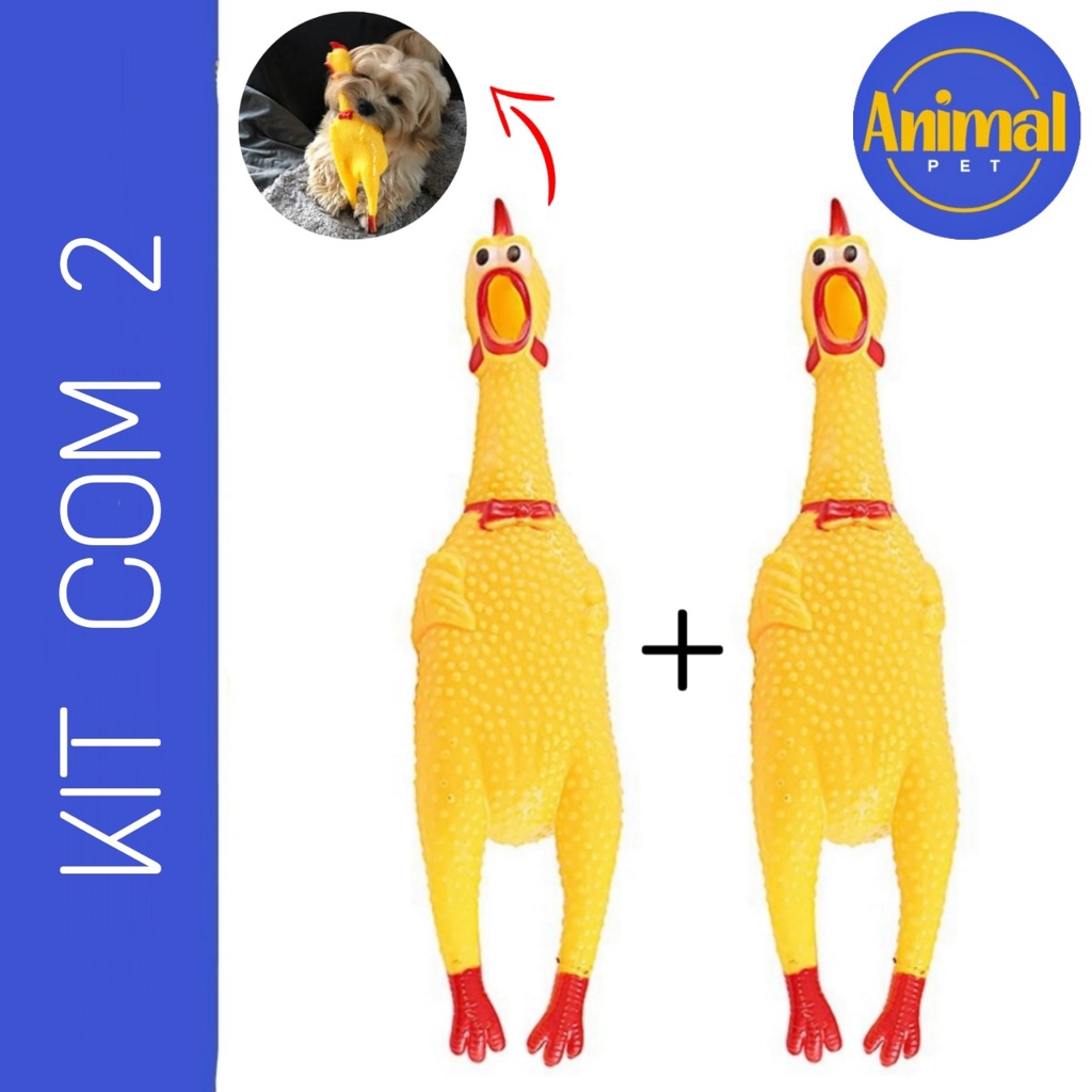 Brinquedo Mordedor Pet Cachorro Animais Kit c/ 2 Cachorro Frango Galinha 16 Cm Pet