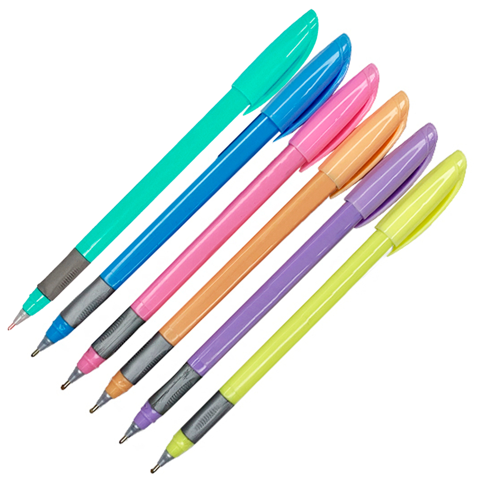 Caneta Esferográfica Ponta Metálica Tons Pastel Com 6 Cores