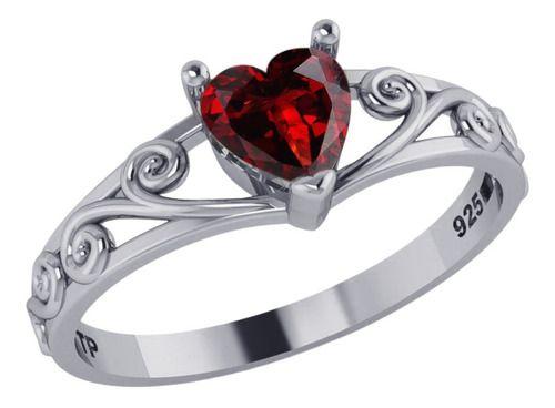 Anel Luxo Pura Prata 925 Granada Coração - Exclusivo