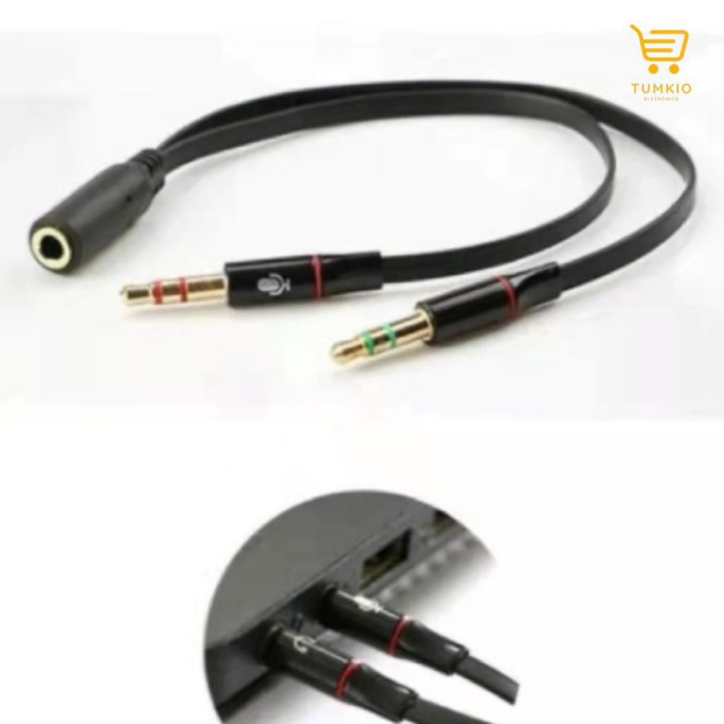 Cabo Conversor Adaptador Divisor Splitter de Áudio 3,5mm para audio e microfone PC ou Notebook Headset