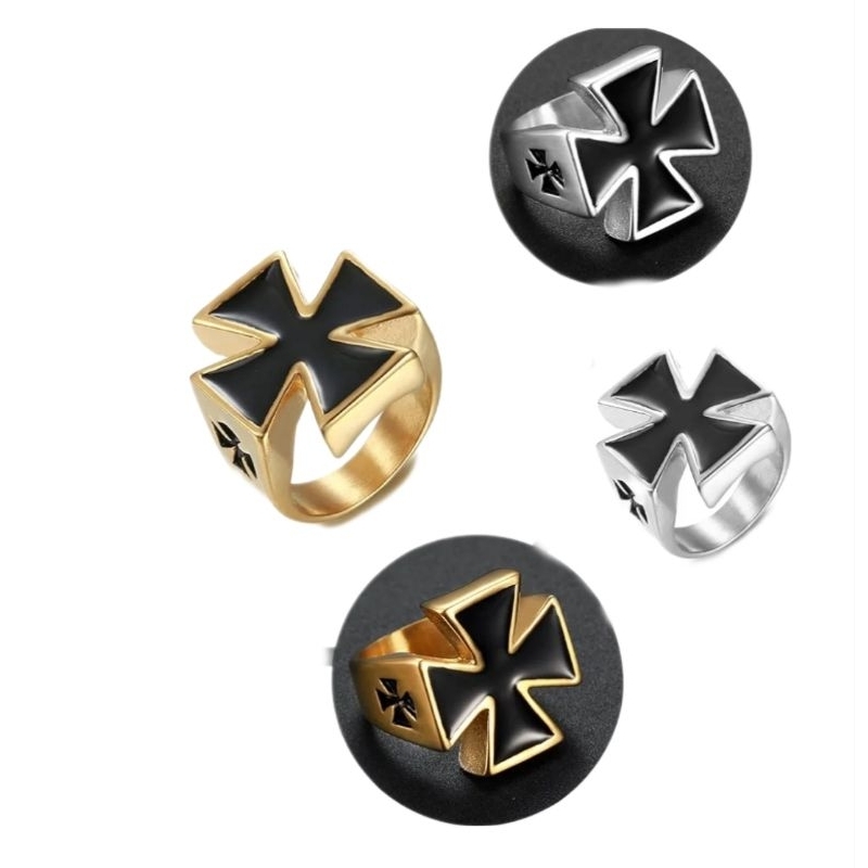 Anel em Aço Inox Maçon Templário Cruz Malta Ordem Cavaleiro Maçon