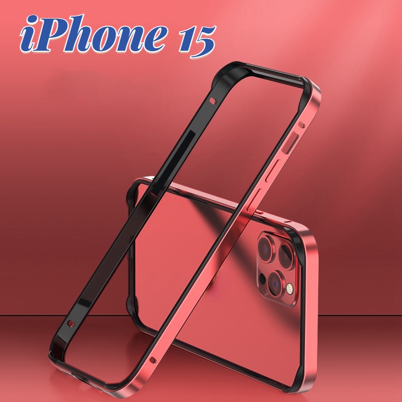 Capa Compatível Para iPhone 15 Pro Max Bumper Case , Pára-Choques De Alumínio Com Estrutura Metálica Soft TPU Interior Slim