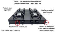 Fogão 2 Bocas Fogareiro Preto De Baixa Pressão Botijão de Gás 13 Quilos