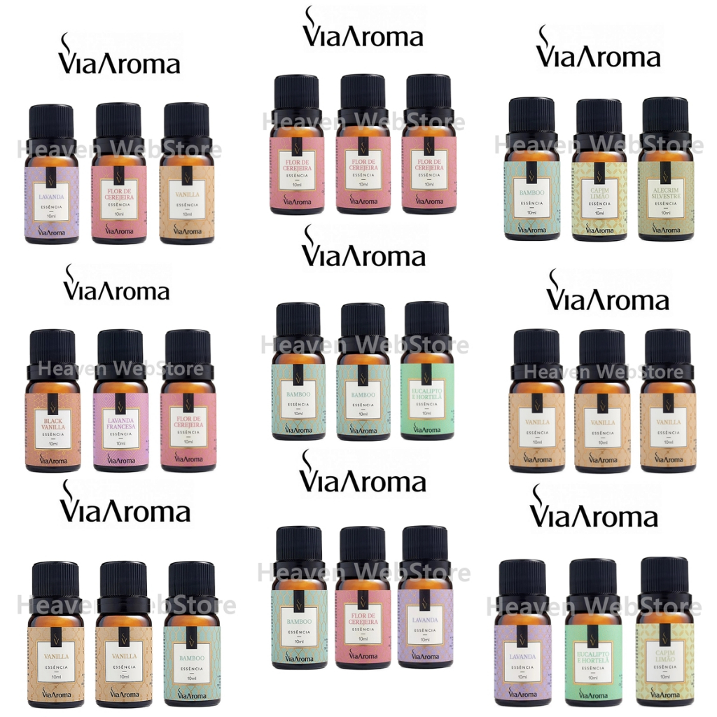Kit 3 Essência Via Aroma 10ml Clássica 100% Original Para Aromatizador de Ambiente E Difusor Elétrico