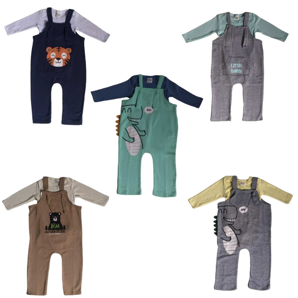 Kit Com 6 Peças Conjunto Body Manga Longa com Jardineira Menino Masculino Estampadas do P ao GG
