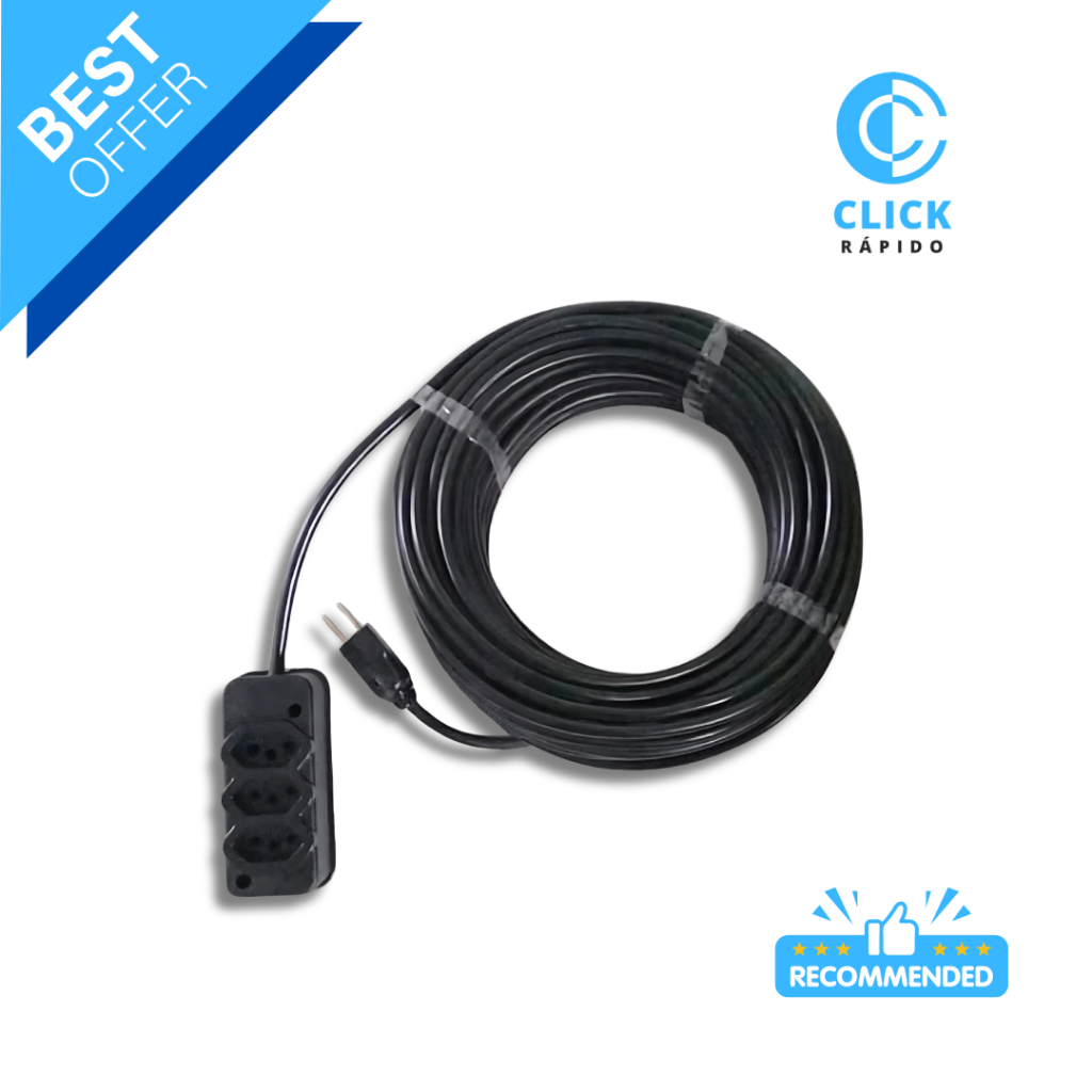 Extensão Cabo Grosso PP e Extensão Elétrica com 3 Tomadas 2, 3, 5 e 10 Metros Prolongadora Elétrica Reforçada