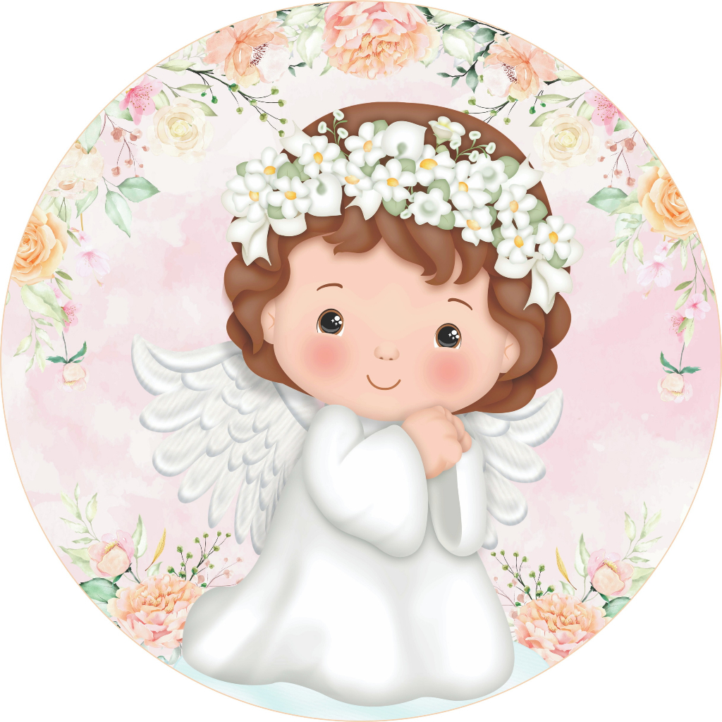 Painel em lona Batizado menina Anjinha 1,00x1,00 - Redondo festa