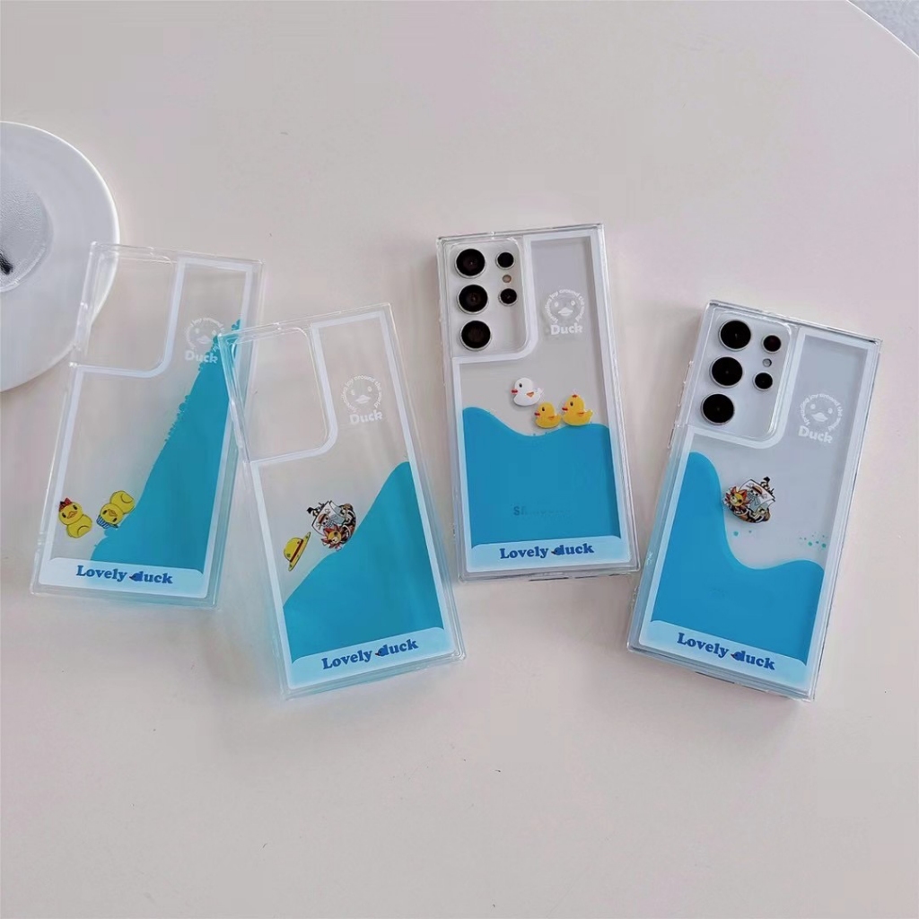 Para Samsung Galaxy S22 Ultra S23 Plus Cute Cartoon One Piece Yellow Duck Icon Icone Flutuante De Areia Movediça Líquida Transparente Capa Da Caixa Macia