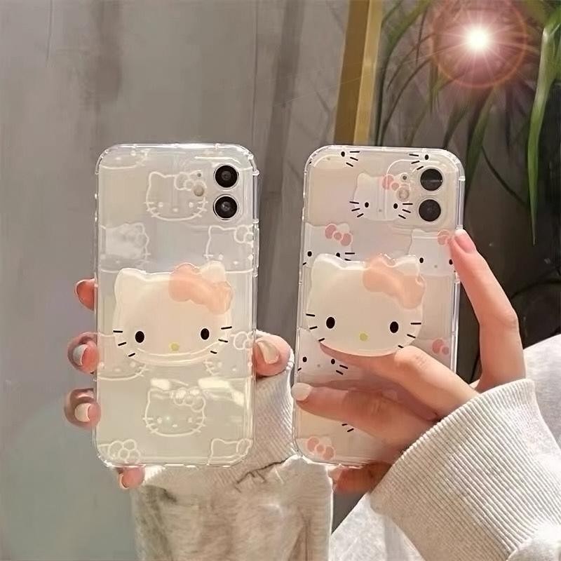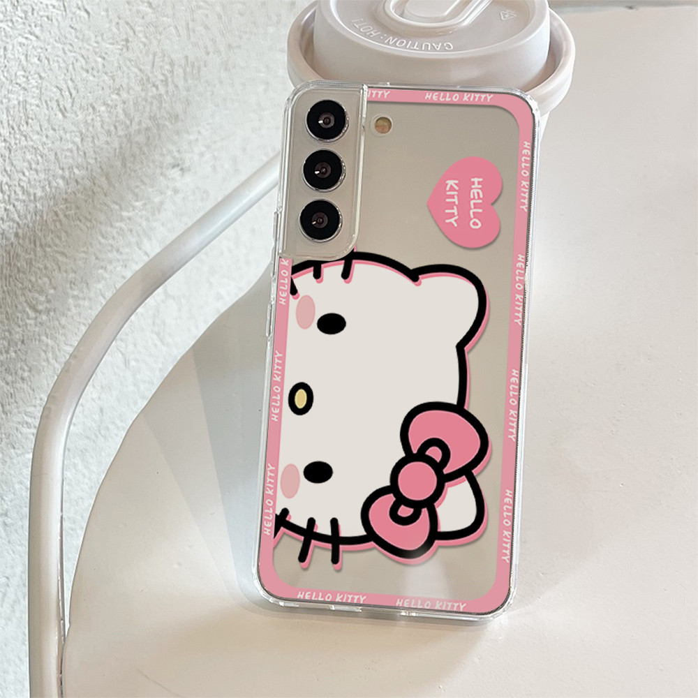 Linha Hello Kitty Bonita Estojo Para Telefone Com Suporte KT Samsung S24 S20 S21 S22 S23 S30 Plus Ultra FE S23FE A13 A23 A32 A34 A54 A53 À Prova De Choque Capa Traseira Macia E Transparente