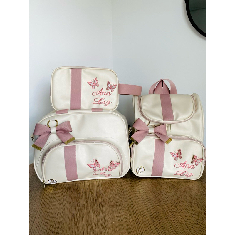 kit bolsa maternidade personalizado 3 peças com mochila e necessárie luxo