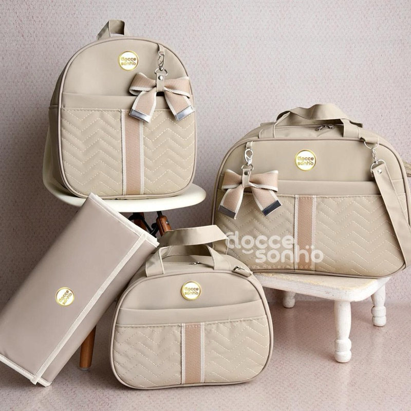 Kit Bolsa Maternidade Bolsa G+Bolsa P+Mochila+Porta Mamadeira e Trocador Clean
