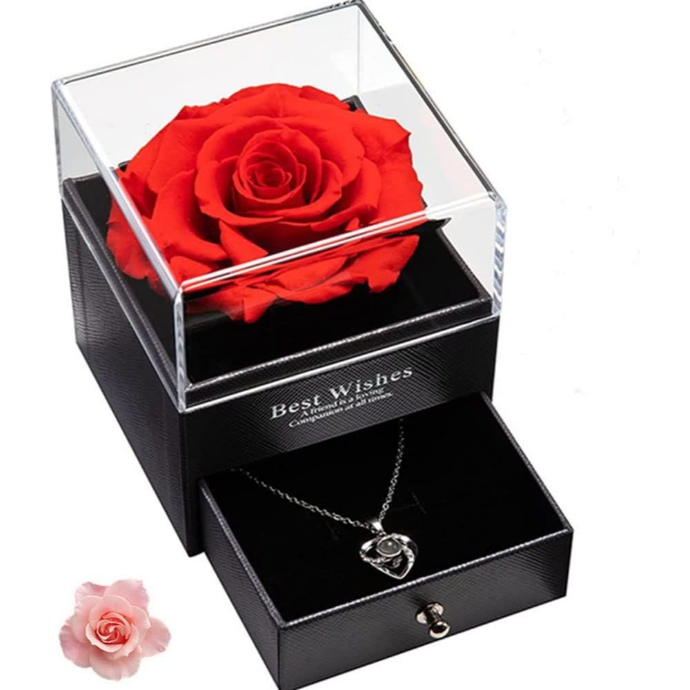 Flor Eterna De Rosa Para Mulheres Embalagem De Presentes Dia Dos Namorados Caixa Romântica Joalheria Joias De Presente 1 Conjunto De Brincos De Acrílico Transparente Colar Caixas De Armazenamento
