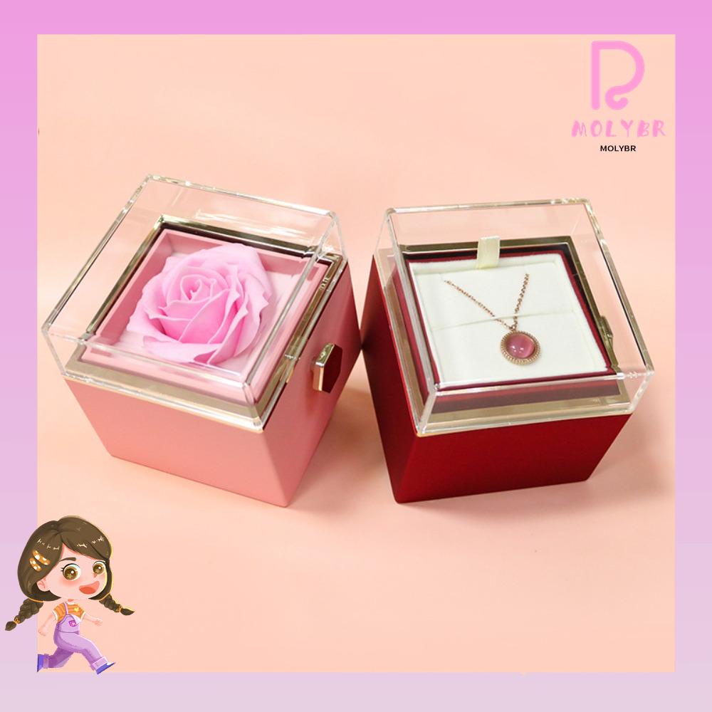 Caixa De Jóias Rotativa MOLYBR , Sabonete De Tampa Transparente Flores Rosa , Criativa Com Saco Colar Acrílico Eterna Armazenamento Dia Dos Namorados