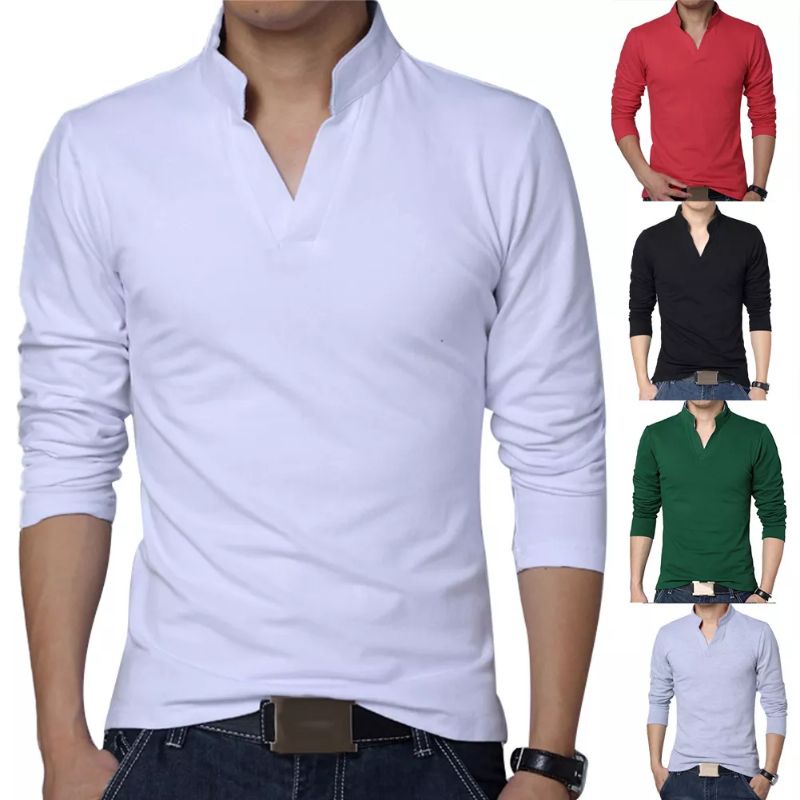 Camisa Masculina Manga Longa Moda Casual Gola V