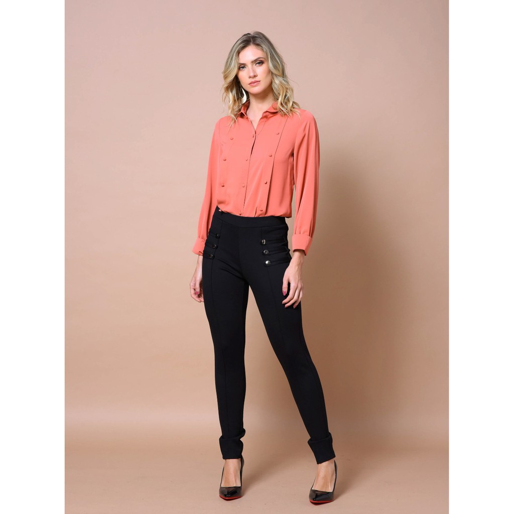 Camisa Feminina Social Manga Longa Corte V Botões - B0016