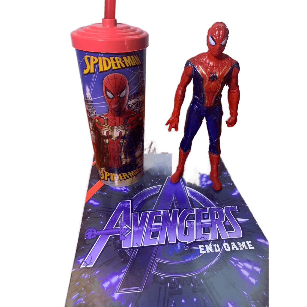 Boneco Homem Aranha + Copo Com Canudo Homem Aranha