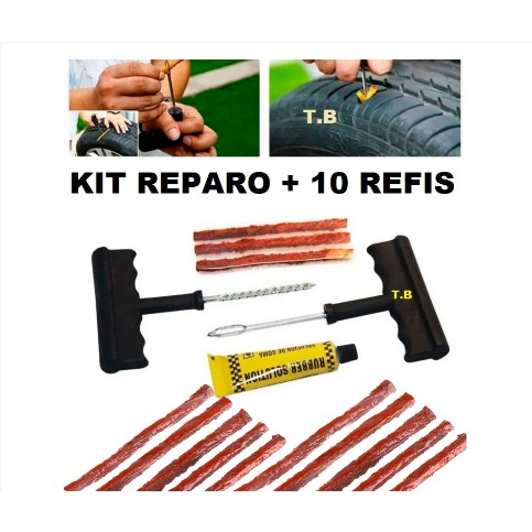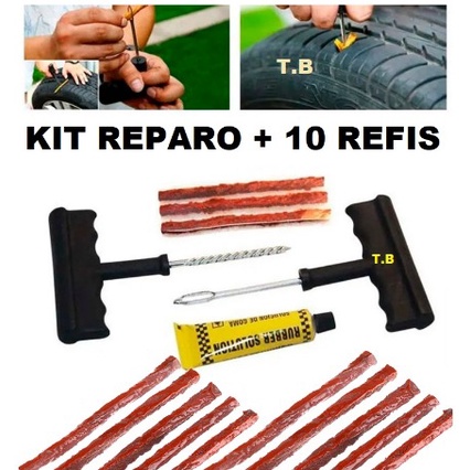 KIT DE REPARO DE PNEU SEM CÂMARA KIT DE CHAVES + 10 REFIL CARRO E MOTO
