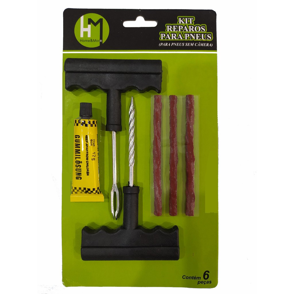 KIT DE REPARO DE PNEU SEM CÂMARA KIT DE CHAVES COM REFIL EXTRA MACARRÃO PARA MOTO E CARRO Excelente