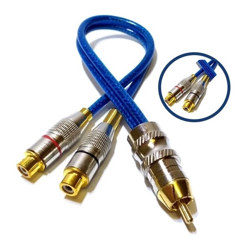 2 Cabo Y RCA Blindado 1 Femea 2 Macho Injetado Azul 4mm Conectores de metal Proteção contra ruidos Dupla blindagem Automotivo Caixa Bob Paredão